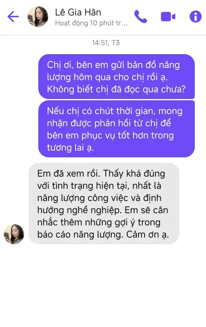 Bạn có thể chọn trong các loại báo cáo phân tích năng lượng cá nhân gồm: báo cáo cơ bản, báo cáo nâng cao, báo cáo năng lượng năm và báo cáo năng lượng 12 tháng. Mỗi báo cáo mang đến góc nhìn riêng về bản đồ năng lượng của bạn để giúp bạn hiểu rõ bản thân hơn.